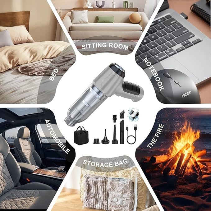 Z łatwością uporaj się z codziennym bałaganem za pomocą przenośnego mini odkurzacza 2 w 1. To kompaktowe urządzenie, wyposażone w silną moc ssania i zintegrowaną funkcję pompowania powietrza, zostało zaprojektowane do czyszczenia i nadmuchiwania w podróży. Niezależnie od tego, czy jesteś w domu, w samochodzie, czy w podróży, ten wszechstronny odkurzacz zapewnia wysoką wydajność i oszczędność miejsca.