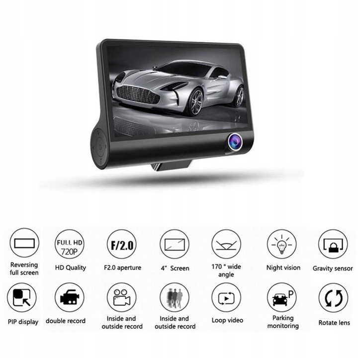 Zadbaj o bezpieczeństwo i rejestruj każdy szczegół na drodze dzięki temu nowoczesnemu rejestratorowi jazdy. Kamera Full HD zapewnia nagrania z przodu, wewnątrz i z tyłu pojazdu, dając pełną kontrolę nad tym, co dzieje się wokół auta. Wbudowany ekran LCD umożliwia podgląd na żywo i odtwarzanie nagrań, a tryb parkingowy rejestruje zdarzenia nawet po wyłączeniu pojazdu. Dzięki detekcji ruchu, czujnikowi wstrząsów i trybowi nocnemu, ten wideorejestrator to must-have dla każdego kierowcy.